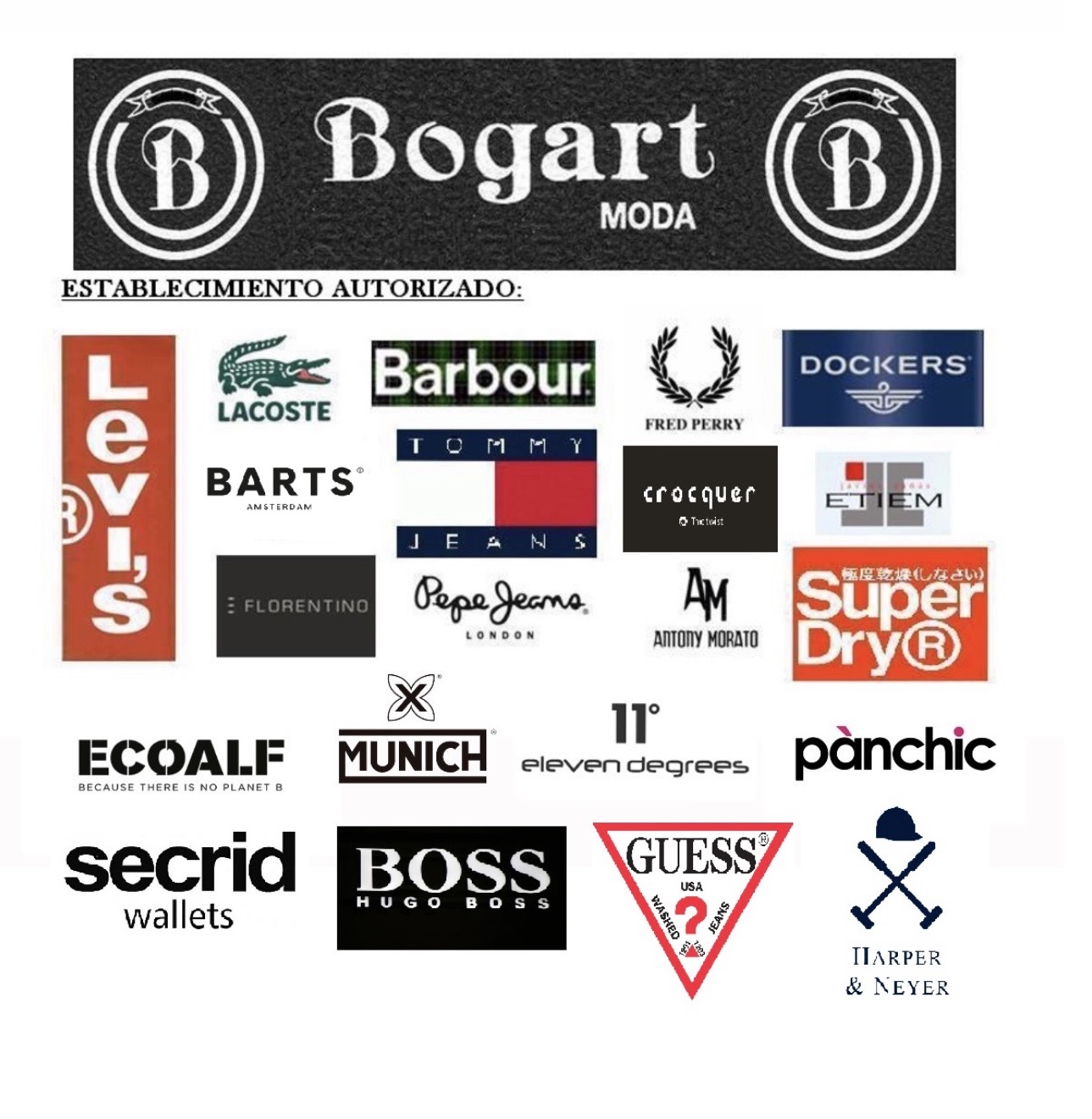 Levis•Lacoste•Tommy•Panchic•Dockers•Superdry •11Degrees•Ecoalf•A.Morato•Fred Perry• Munich•Boss•Ugg•Guess